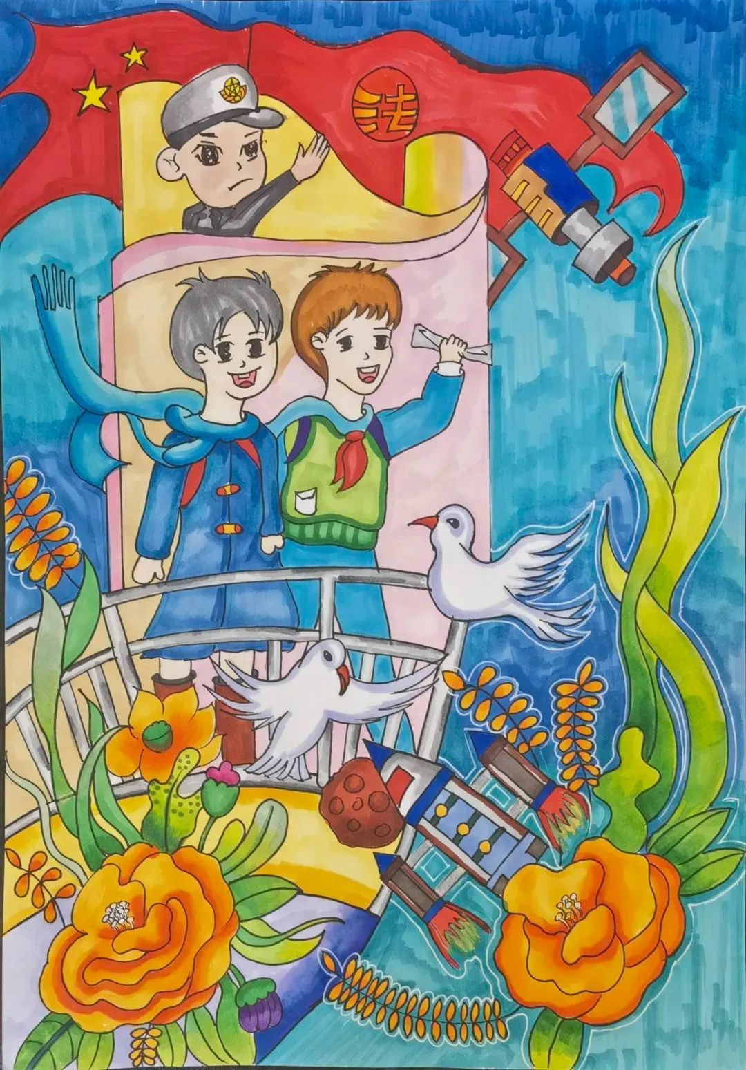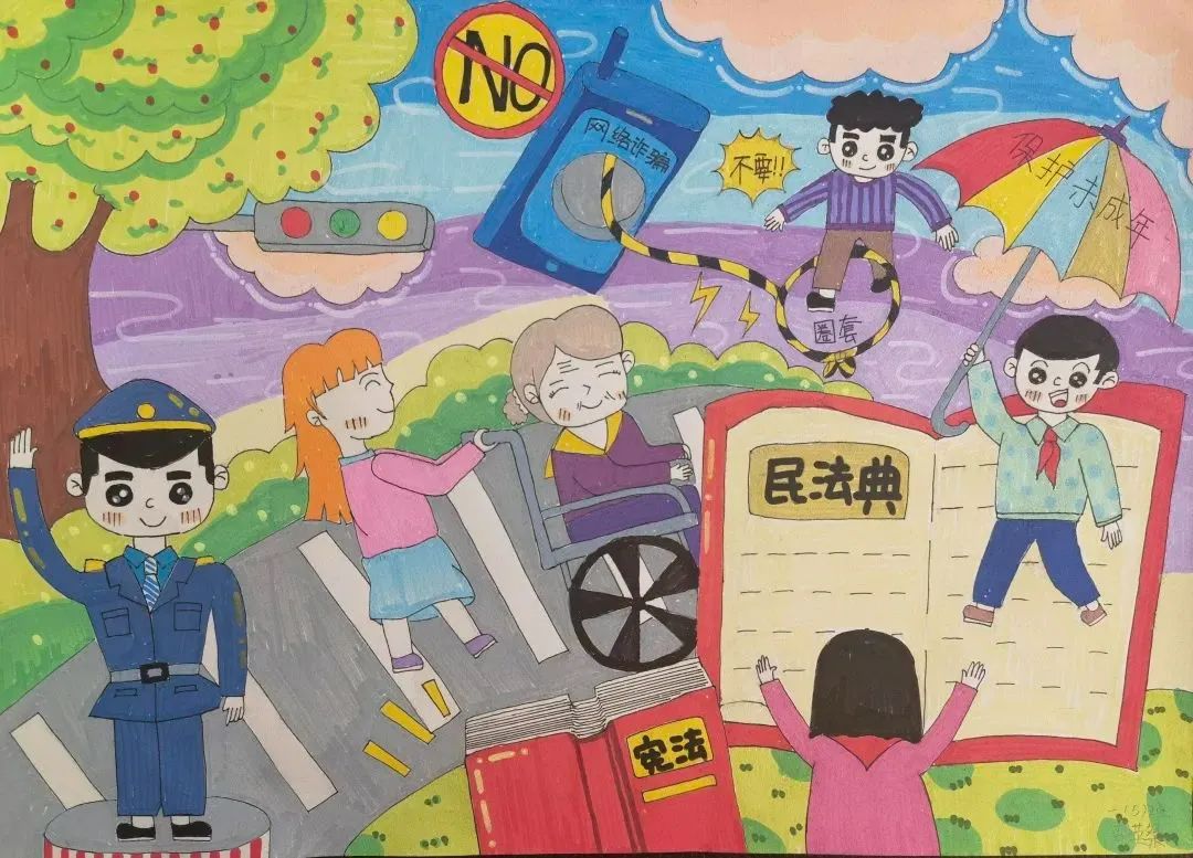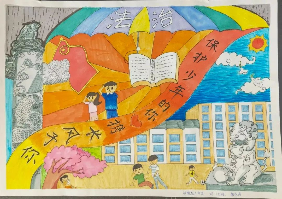 今天,我们看到孩子们用手中的画笔,记录着颗颗“法治种子”开花、结果的美好历程。
