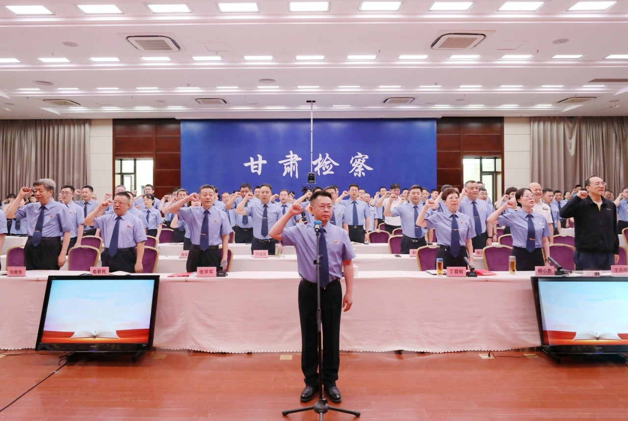 大会在庄严的国歌中拉开帷幕,沈涧带领全体党员干警重温入党誓词,党组成员、副检察长张学军宣读《关于表彰优秀共产党员、优秀党务工作者和先进党支部的决定》,在家党组成员为优秀共产党员、优秀党务工作者和先进党支部颁发荣誉证书和奖牌。