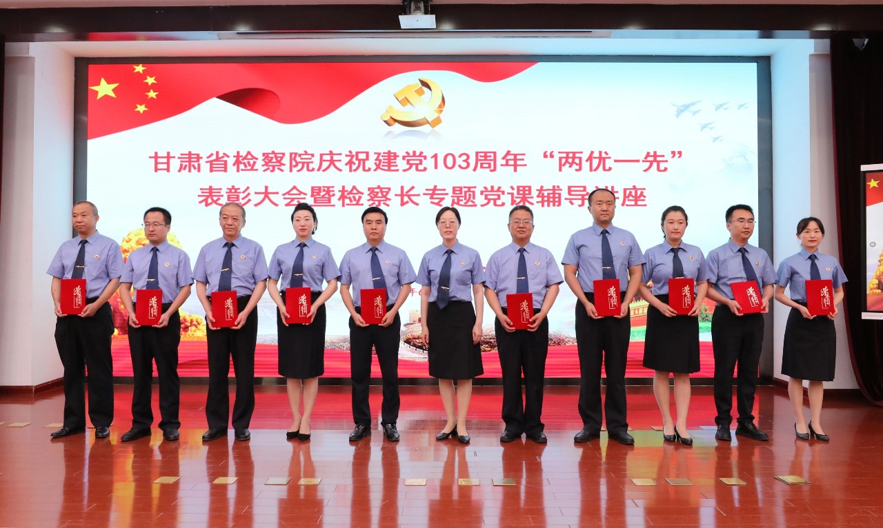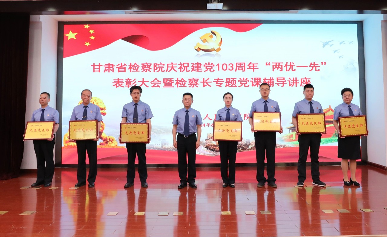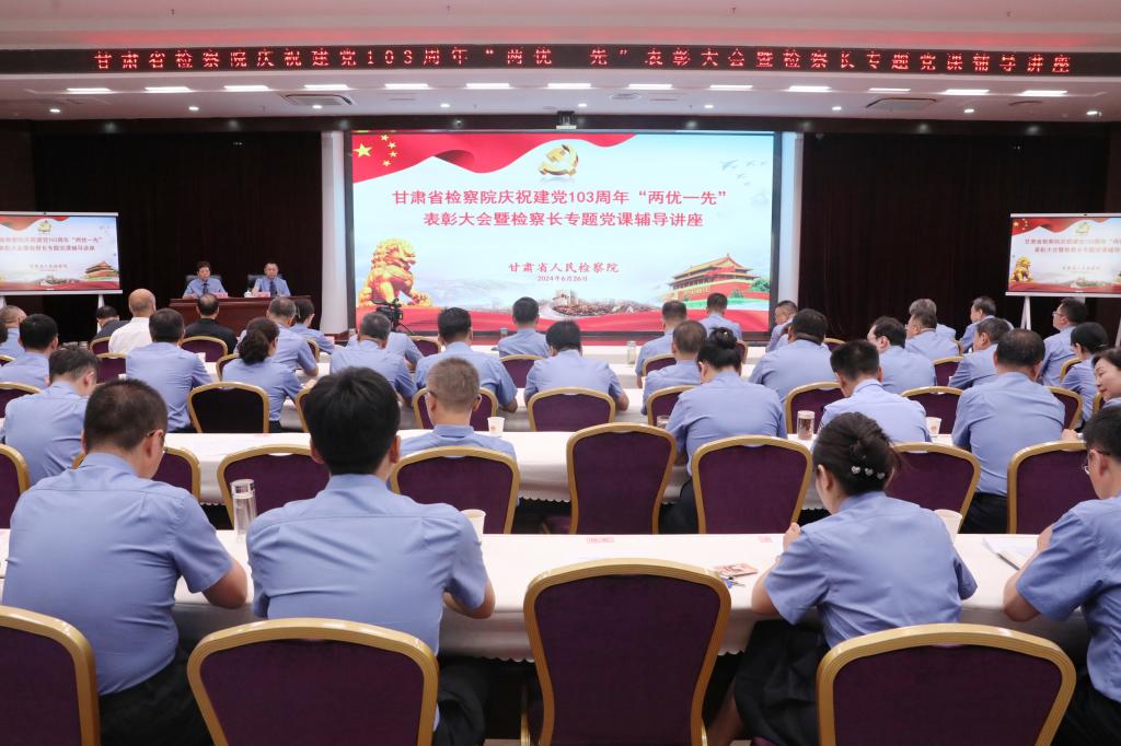 为庆祝中国共产党成立103周年,表彰先进、弘扬正气,激励各级党组织和广大党员坚定信念、对党忠诚、履职尽责,奋发有为,6月26日,省检察院召开“两优一先”表彰大会,表彰33名优秀共产党员、10名优秀党务工作者和7个先进党支部。省检察院党组书记、检察长沈涧出席会议并颁奖,党组副书记、副检察长丁霞敏主持会议,省检察院党组成员、检委会专职委员、二级巡视员、二级高级检察官、特级检察官助理,机关全体党员干警以及三个分院党员干警代表和离退休老党员代表160余人参加会议。