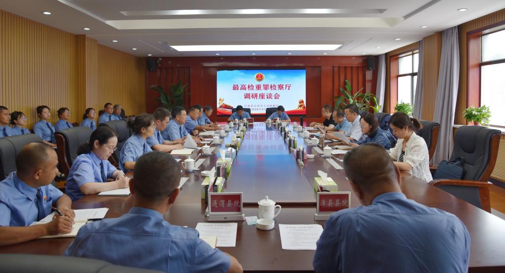 在永靖县检察院,调研组听取了民族地区高质效推动检察工作开展情况,并与一线办案检察官就犯罪态势分析、证据标准把握、行刑反向衔接等刑事检察重点、难点工作进行交流讨论,针对大家提出的办案过程中存在的问题和困惑,调研组进行现场解答和指导,并听取有关意见和建议。
