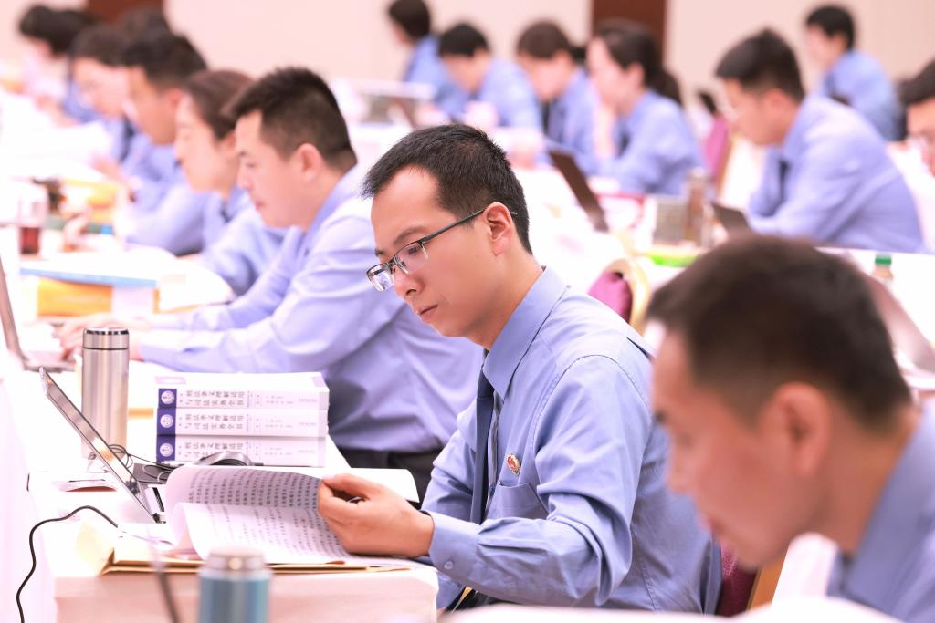 清晨7时许,兰州秋意微凉。参赛选手陆续抵达考场后,或闭目凝神,或轻声交流,或反复检查资料。考场内,笔记本电脑整齐排列,法律法规、参考书籍堆叠有序,空气中弥漫着紧张而又庄重的气氛。8时整,考试正式开始。选手们迅速进入状态,瞬间考场内键盘敲击声、书页翻动声、笔尖沙沙声此起彼伏。一名来自庆阳的选手在休息间隙表示,“本来非常紧张,手心都出汗了,可打开试卷一看‘包不同伙同白世镜’一下给我整乐了,谢谢出题老师,您费心了”。