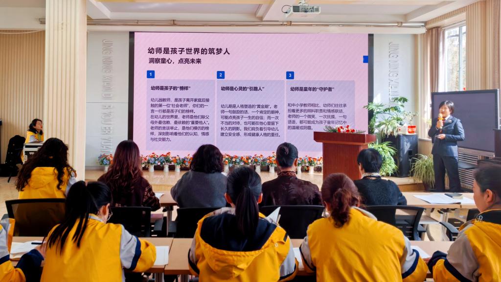 静宁县检察院干警到辖区幼儿园,为教职工开展师德师风暨法治安全讲座,围绕履职风险、强制报告、校园管理等内容以案释法,助力教职工当好幼儿健康成长的守护者。