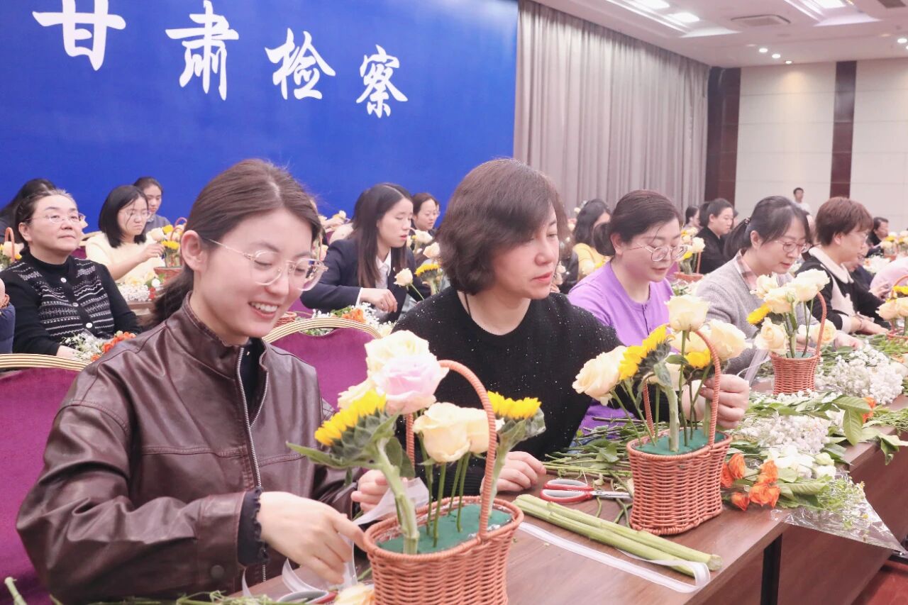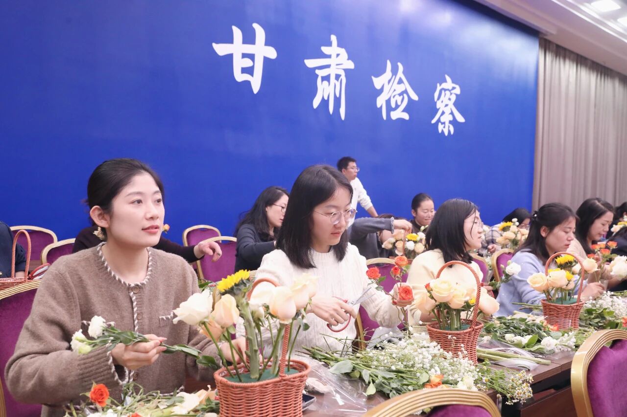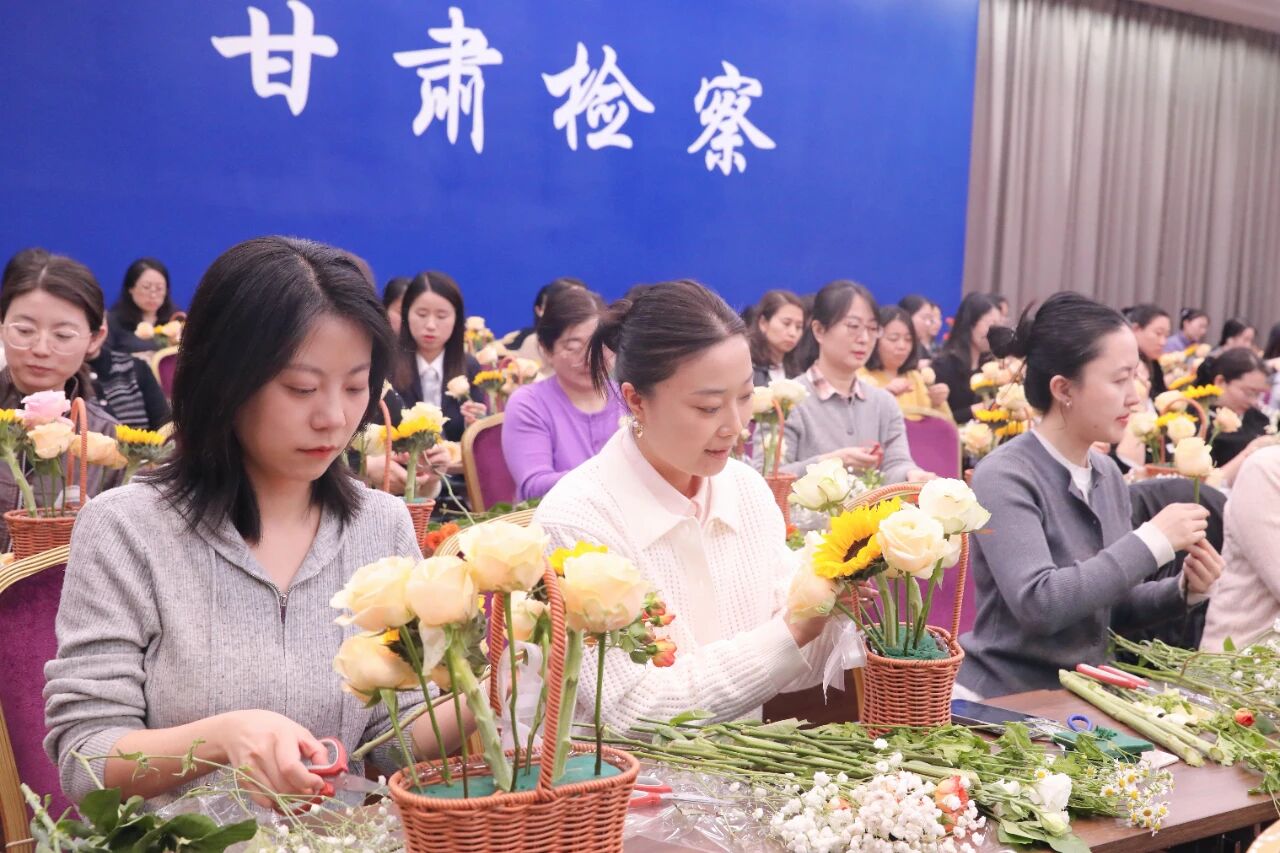 为进一步巩固深化全国文明单位创建成果,丰富机关干警精神文化生活,激发干事创业热情,提升文化艺术修养,3月6日下午,甘肃省检察院举办“花香悦检心 巾帼绽芳华”庆“三八”国际劳动妇女节花艺活动,机关150余名女干警参加活动。