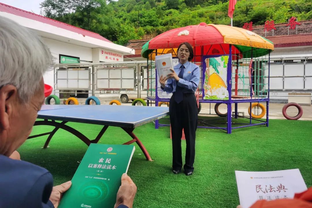 期间,省检察院在各帮扶村还开展了以“乡村振兴、法治同行”为主题法治宣讲活动。检察干警深入田间地头、院落、学校等场所,重点围绕宣传《民法典》,结合自身办案经历,通过通俗易懂语言,为群众、学生送法上门,引导群众自觉守法、遇事找法、解决问题靠法,增强农村干部群众尊法学法守法用法意识。