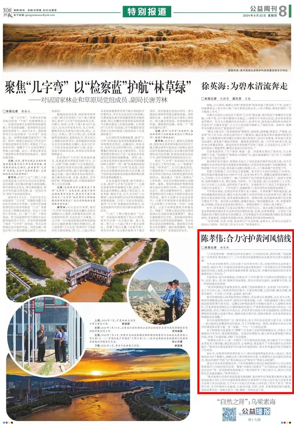 2024年8月22日,检察日报公益周刊刊发《陈孝伟:合力守护黄河风情线》。