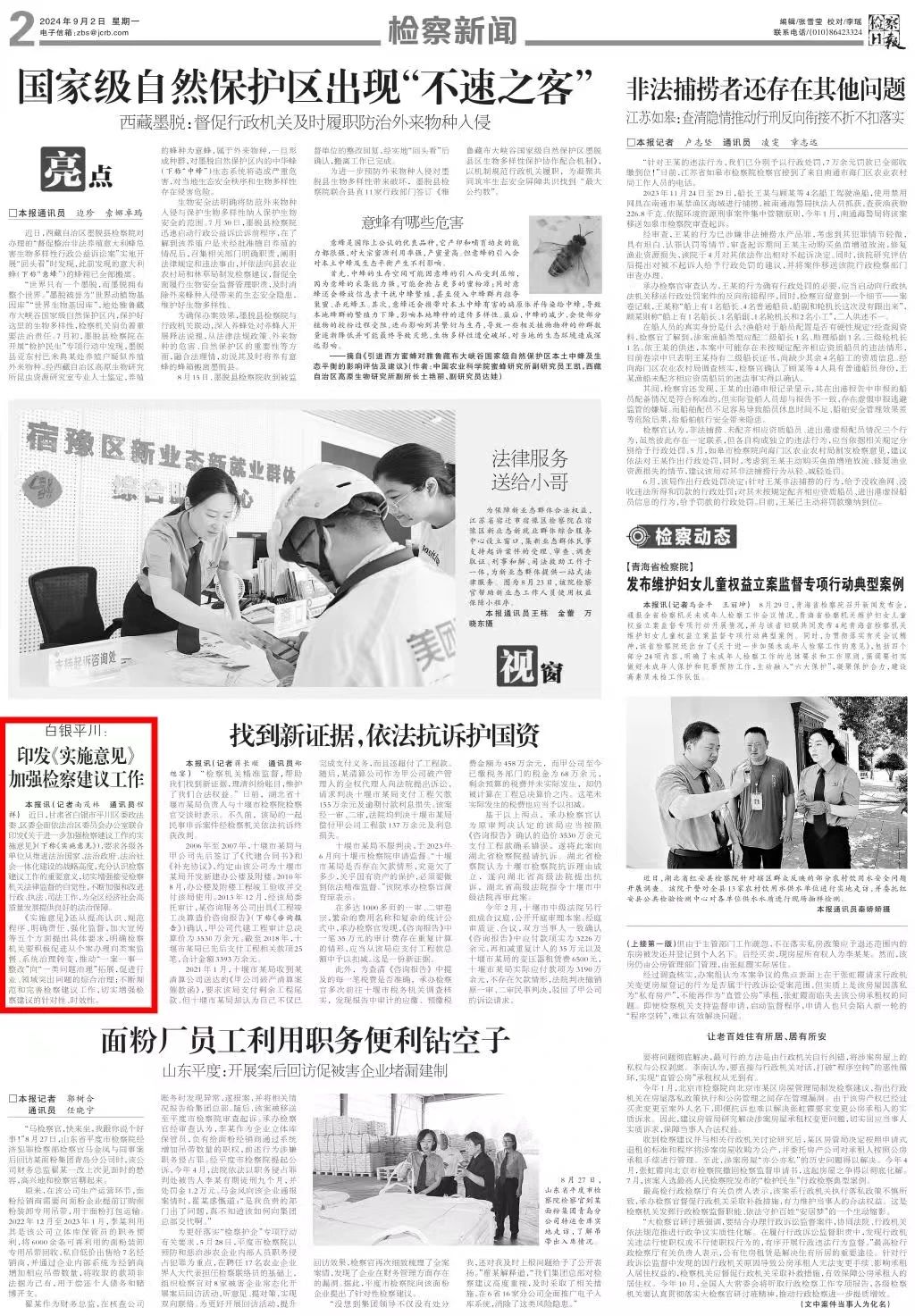 2024年9月2日,检察日报刊发《白银平川:印发〈实施意见〉加强检察建议工作》。