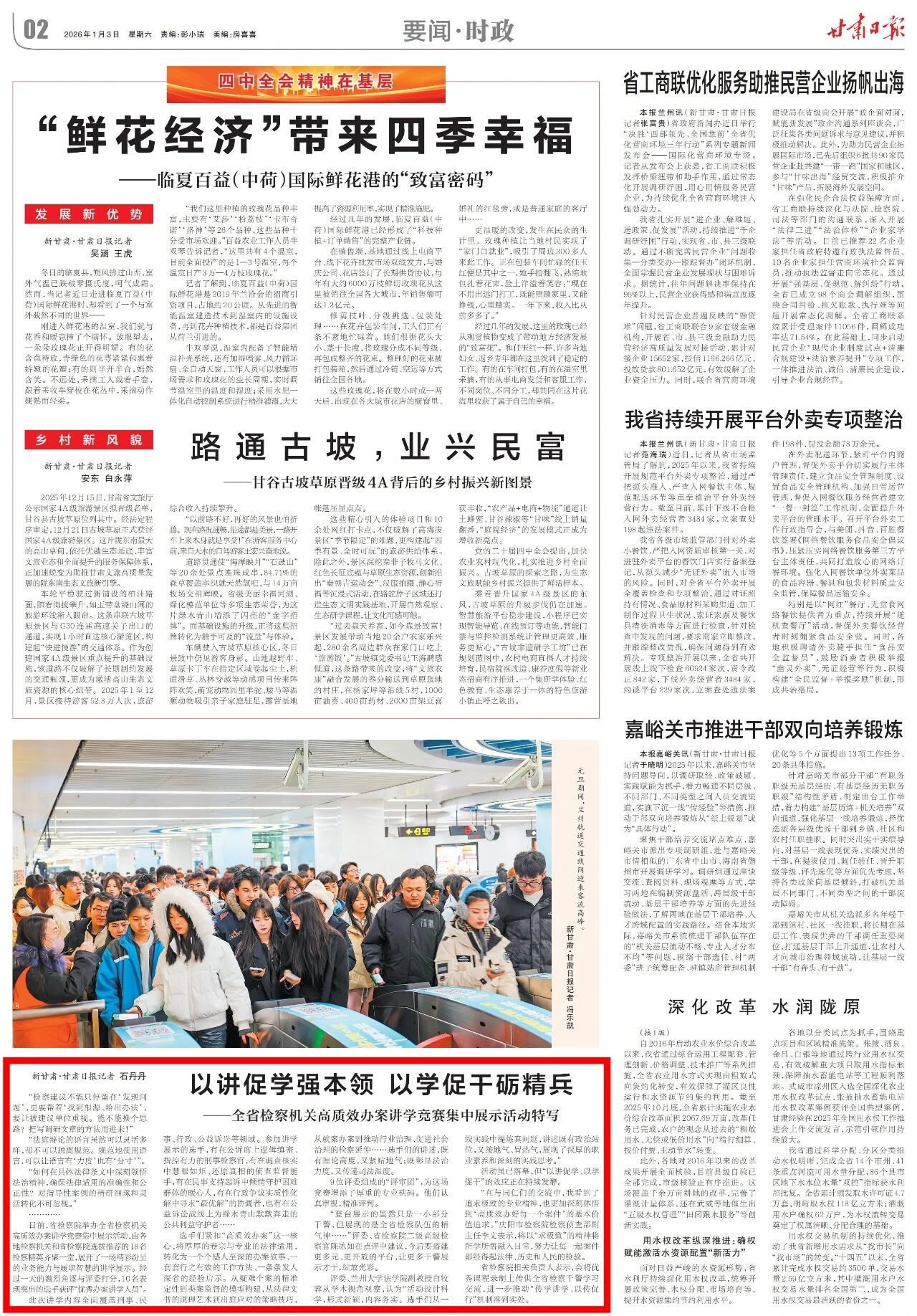 2026年1月3日,甘肃日报刊发《以讲促学强本领 以学促干砺精兵——全省检察机关高质效办案讲学竞赛集中展示活动特写》。